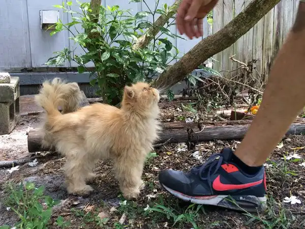 Во время инспекции брошенного дома в Сарасоте, штат Флорида, Пол Татеосян вместе с напарником услышали мяуканье. На встречу мужчинам выбежал рыжий кот, который явно был голоден. Пол решил угостить пушистика манго, которое он нашел на участке, но животному такое лакомство не понравилось. Судя по выражению мордочки кота, он и инспекторам не был рад, но все же старался не отходить от них. Пол пожалел брошенного кота и забрал к себе домой.