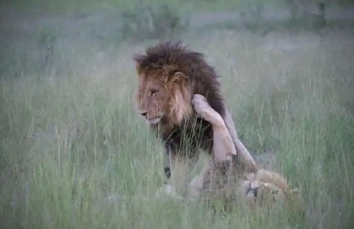 В объектив фотографа Николь Камбрэ попали два льва, которые пытались спариться между собой. Вопрос гомосексуальности среди животных обсуждается уже не один год, так в 2012 году ученые из Йеля опубликовал большое исследование, в котором утверждалось то, что "гомосексуальность среди животных встречается гораздо чаще, чем мы думаем и может составлять около 10% от популяции во всем мире". Среди ученых ходит мнение, что проявление гомосексуализма у самцов используется для доказательства собственного превосходства.
