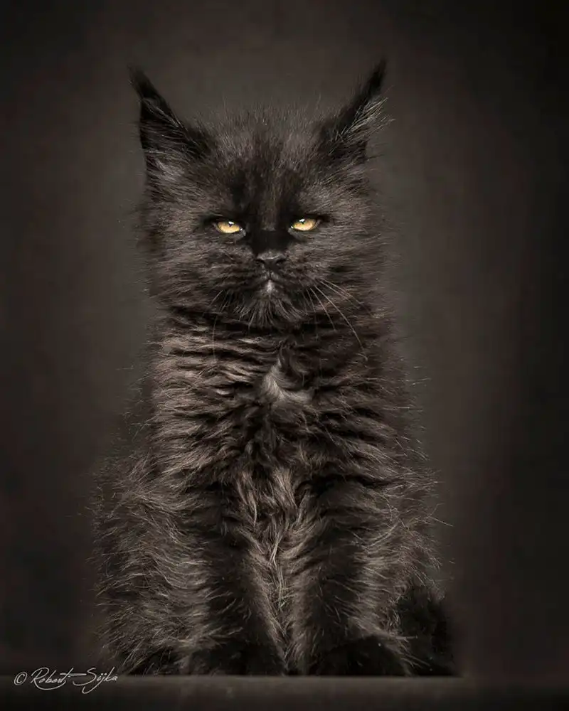 Эти коты с бездонными глазами колдунов, похожие то ли на диких рысей, то ли на волшебных котов-баюнов из древних сказаний, восхищают и завораживают. Кажется, смотреть на них можно бесконечно. Фотограф Роберт Сижка предлагает вам вместе с ним попытаться разгадать тайну мэйкунов.