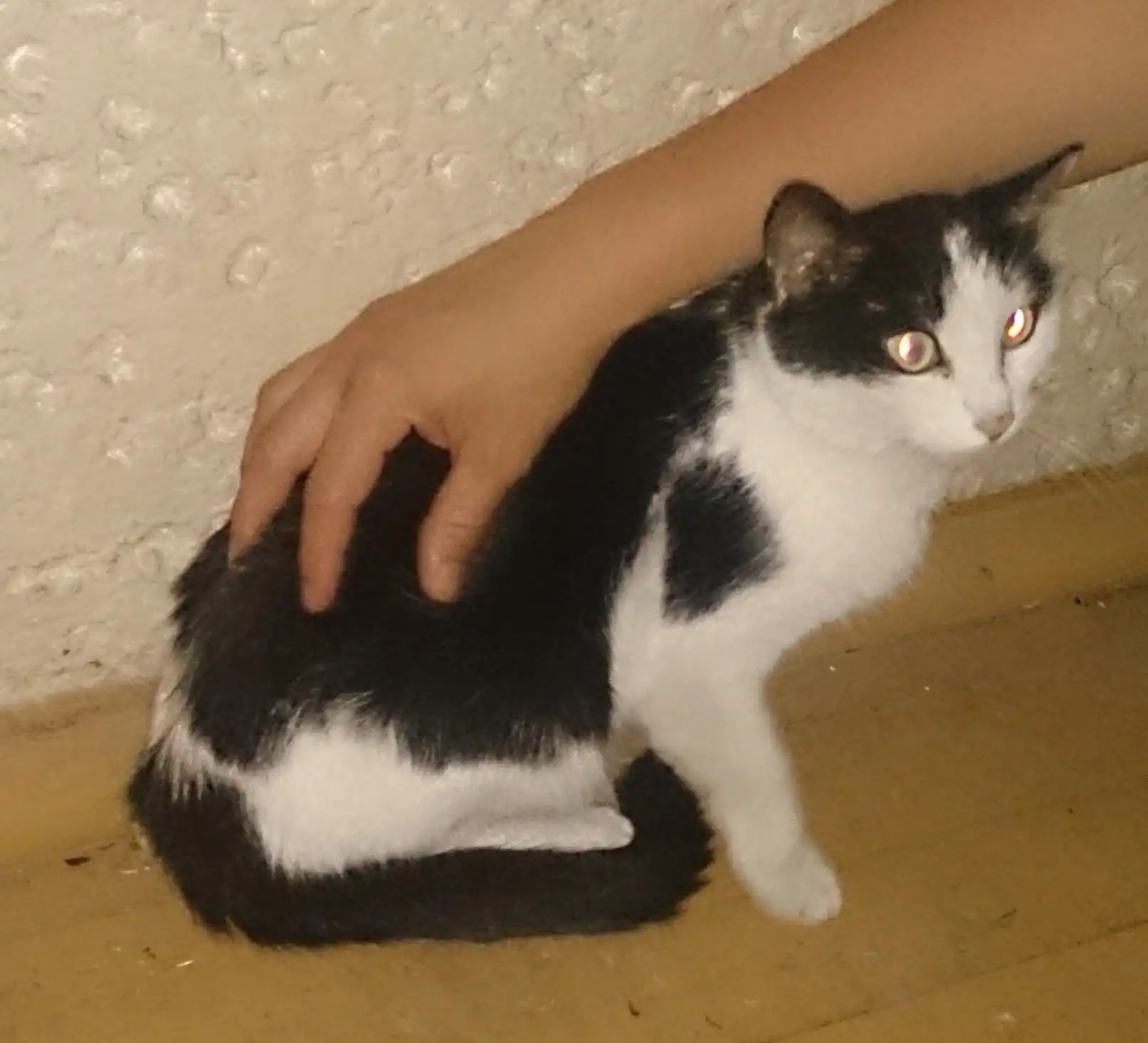 На прошлой неделе ее подбросили на работу, где никто ее взять не захотел и грозились совсем выкинуть на улицу. Пока у нее есть временный приют, но нужен настоящий дом и семья. Это очень доброе и ласковое существо, приучено к лотку, дома не хулиганит, играет очень осторожно никаких царапин или сильных укосов, абсолютно не агрессивная ….даже наоборот запуганная, видимо последствия обращения старого хозяина. Без сомнения она сможет прекрасно поладить с ребенком и стать любимым домочадцем или просто другом новому хозяина.