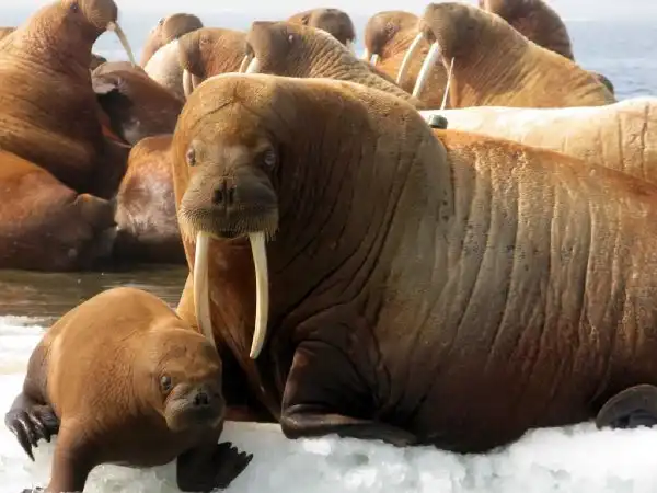 Вес взрослого моржа может достигать до двух тонн, что равносильно привычному для нас автомобилю на дорогах. Своими размерами это животное уступает первенство в рейтинге «Cамых больших морских млекопитающих» лишь морскому слону.