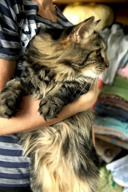 Тихон - шикарный огромный котище, окрас мраморный, длинношерстный, возраст 1,5 года. Порода курильский бобтейл со слов хозяев, которые от него отказались из-за аллергии у новорожденного ребенка. Несмотря на свои гигантские размеры, кот скромный и покладистый, в меру ласковый, но ненавязчивый. В еде предпочитает натуральное, но может питаться и готовыми кормами. Пользуется лотком. Кастрирован.