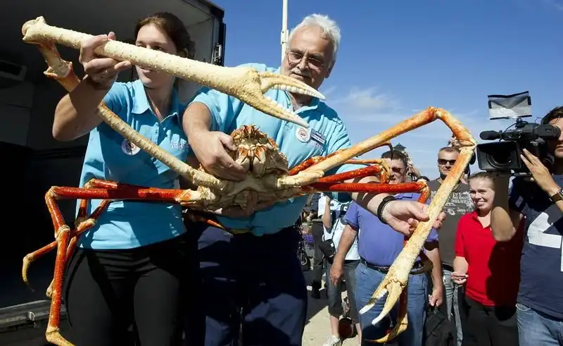 Недавно был выловлен краб-рекордсмен. Этот огромный краб уже получил кличку «Crab Kong», а ведь он еще будет расти. Размер гигантского краба достигает 3 метров в поперечнике, а когда он станет взрослым, то сможет оседлать автомобиль. Японский краб-паук был выловлен в районе Suraga Bay к юго-западу от Токио. Гастрономические качества краба-паука ценятся очень высоко, и первоначально из него планировалось приготовить суп. К счастью для краба, рыбаки связались с биологом Робином Джеймсом из Weymouth Sea Life, который посетил село всего несколько недель назад.