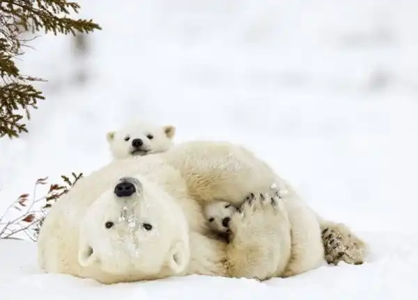 Мишки — наши новые котики: чистый кайф смотреть на эти фото, где они воспитывают и холят своих малышей. (Вспомнился С.Я. Маршак - "медведя лет пяти-шести, учили как себя вести...") Удивительно, насколько поведение медведицы и ее детенышей мало отличается от человеческого. Все знакомо — и жесты, и ситуации, и даже мимика медведиц-мамаш узнаваема.