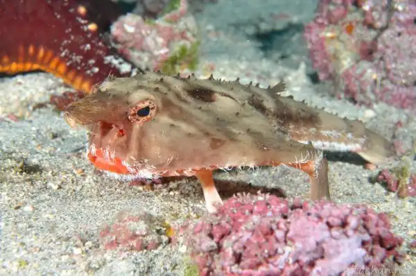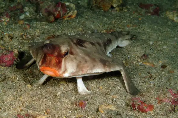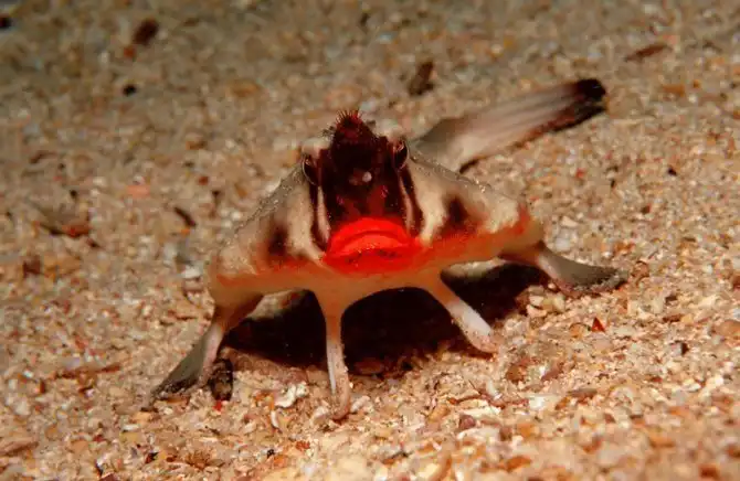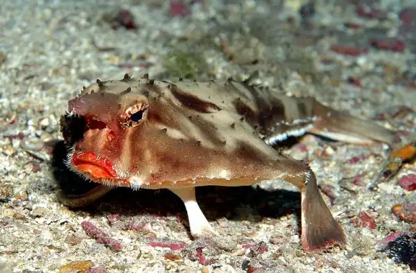 Их сходство с лягушкой еще больше усиливается благодаря удивительным плавникам. Если спинной и хвостовой плавники у морских нетопырей маленькие и выглядят вполне «по-рыбьему», то грудные и брюшные состоят из нескольких скелетных элементов, расположенных под углом друг к другу. Концевая часть плавника отвернута в сторону, уплощена и расширена, при этом грудные плавники невелики, расположены на горле и выглядят как вспомогательные подпорки, а брюшные очень крупные и похожи на лягушачьи лапы. Завершает этот портрет голая кожа рыб, часто усеянная мягкими выростами и острыми шипами.
