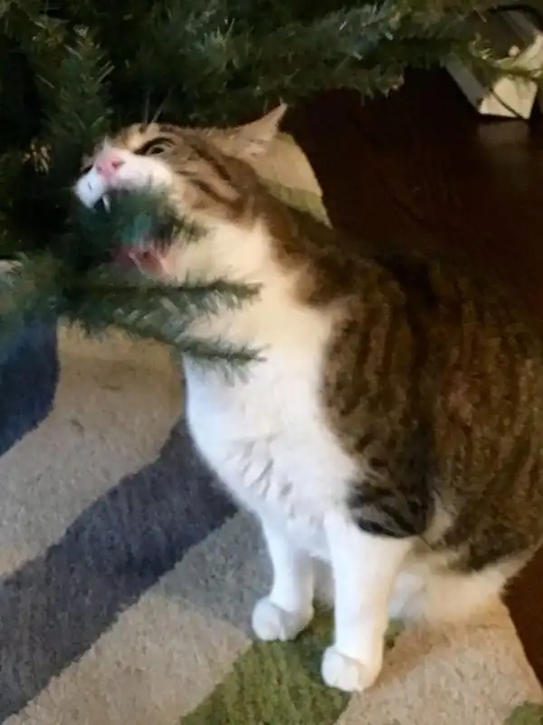 Кот, который пытается съесть Рождество