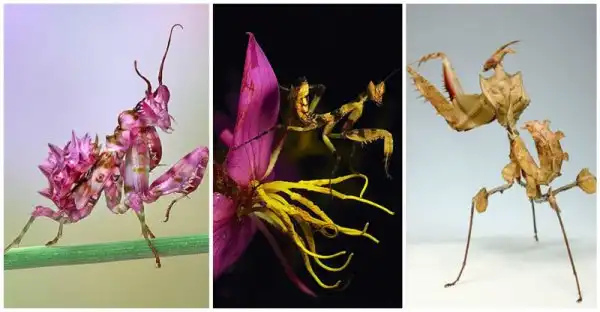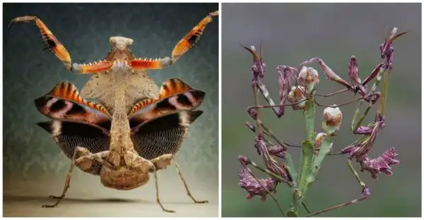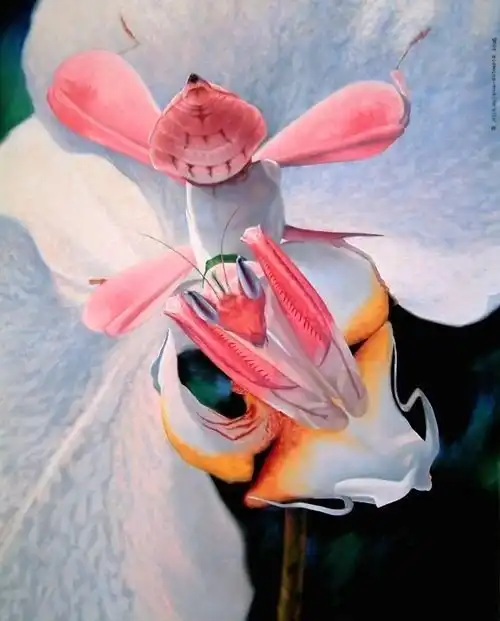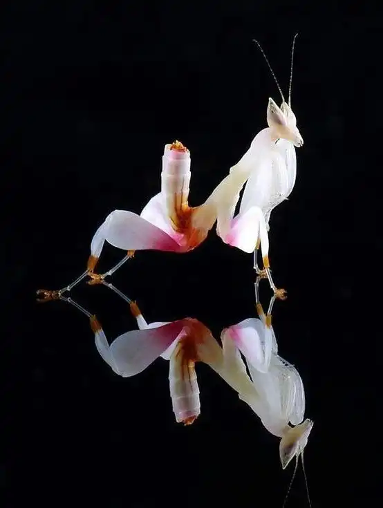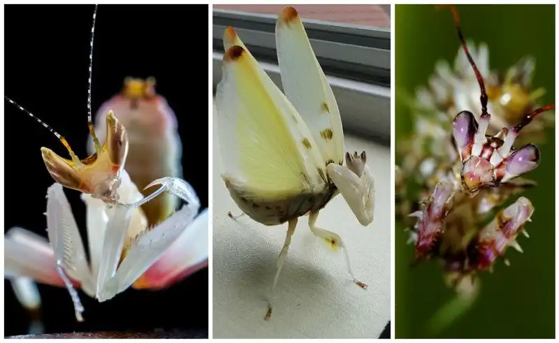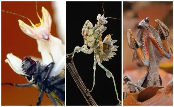 Тропические богомолы, охотящиеся в цветах очень похожи и окраской и формой тела на цветочные лепестки.