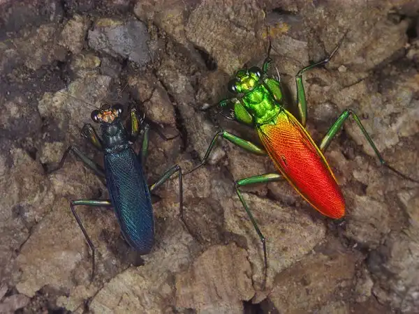 В этом параде маскировочных костюмов редкое исключение составляет яркий богомол, покровы которого отливают металлическим блеском всех оттенков радуги.
