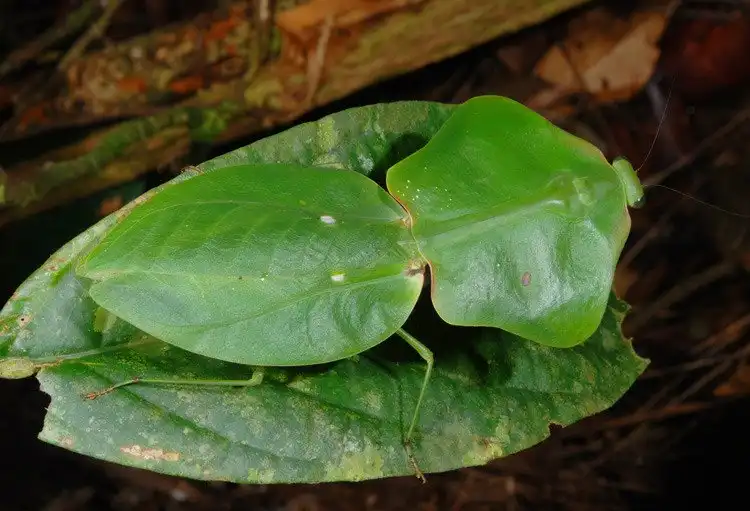 у видов, обитающих в тропическом лесу, оно зеленое с боковыми выростами и похоже на листик…
