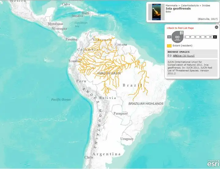 Амазонская иния является наиболее благополучным видом среди речных дельфинов. Однако в списках Международной Красной книги она имеет статус «уязвимый вид» (vulnerable).