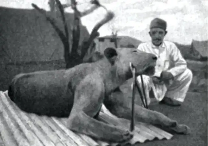 В марте 1898 года на реке Цаво началось строительство железнодорожного моста, который должен был стать частью Угандийской железной дороги. Практически сразу рабочие стали подвергаться нападениям двух львов-людоедов. Пытаясь защитить свои палатки, рабочие огораживали их колючим кустарником, но это не помогало. В течение девяти месяцев львы регулярно совершали нападения, что в конечном итоге привело к массовому бегству рабочих и приостановке строительства. Начальник стройки Джон Генри Паттерсон в своих воспоминаниях писал, что львы убили 28 рабочих-индийцев, а количество убитых африканцев так и осталось неизвестным. Скорее всего их просто не считали. Первого льва застрелили 9 декабря, второго — 29 декабря. Необычным оказался тот факт, что оба они не имели гривы, хоть и были самцами. Шкуры тигров в 1925 году были проданы Филдовскому музею. А а 2009 году учёные исследовали изотопный состав костей и волос этих шкур и выяснили, что на двоих львы съели 35 человек.
