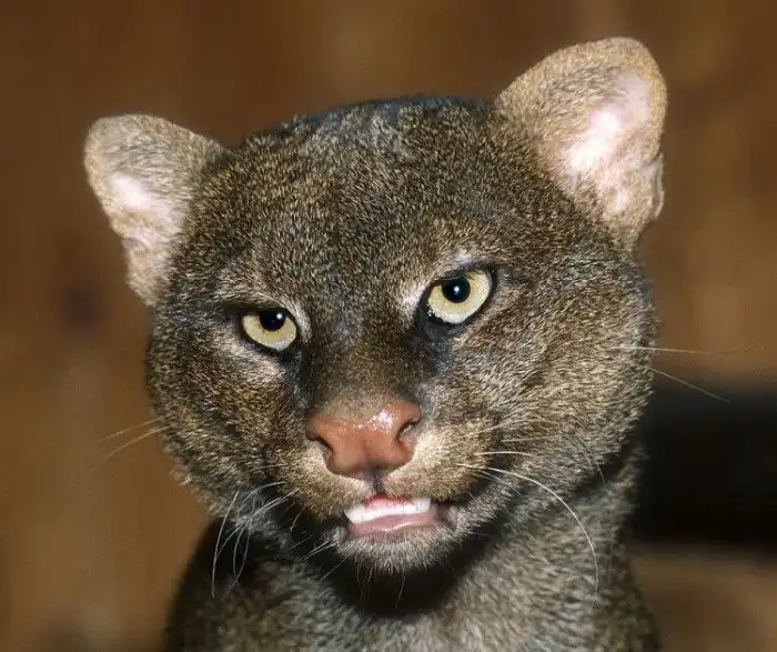 Ягуарунди обладают весьма необычным для кошачьих вытянутым гибким телом на коротких сильных ногах. По внешнему виду они куньих или виверровых, чем на кошачьих. Высота в холке у ягуарунди небольшая — всего 25—35 см, а вот длина может достигать 77 см, плюс к этому ещё хвост от 33 до 60 см. Весят эти кошки до 9 кг. Какой-то одной среды обитания у ягуарунди нет. Они встречаются и в саванных, и в колючих зарослях, и даже во влажных тропических лесах, в общем населяют практически всю Южную и Центральную Америку. Ягуарунди скрытые животные, но в отличие от большинства кошачьих, образ жизни у них преимущественно дневной. Передвигаться предпочитают по земле, хотя умеют лазать по деревьям и плавать. Питаются разнообразными мелкими млекопитающими, рептилиями, птицами, лягушками и рыбой.