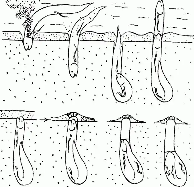 Например, обитающие в бассейне Конго темные протоптеры делают это на поверхности грунта, создав вокруг себя специальный слизевой кокон.