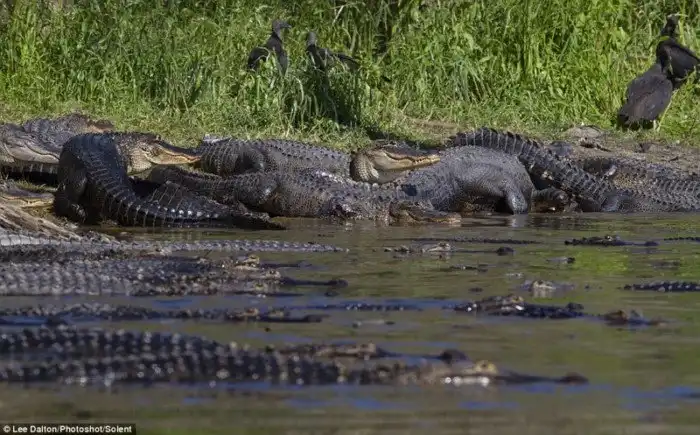 Сотни аллигаторов собрались на берегу одного из глубоких речных омутов в Национальном речном парке Миякки во Флориде. Британский фотограф Ли Далтон, специализирующийся на съемках дикой природы, сумел подобраться к ним достаточно близко, чтобы сделать крупные снимки весенних солнечных ванн аллигаторов. Хотя, по утверждению Далтона, такие сборища страшных рептилий можно заметить издалека, и даже более того: скопление аллигаторов на весеннем пляже можно увидеть на спутниковых снимках Google!