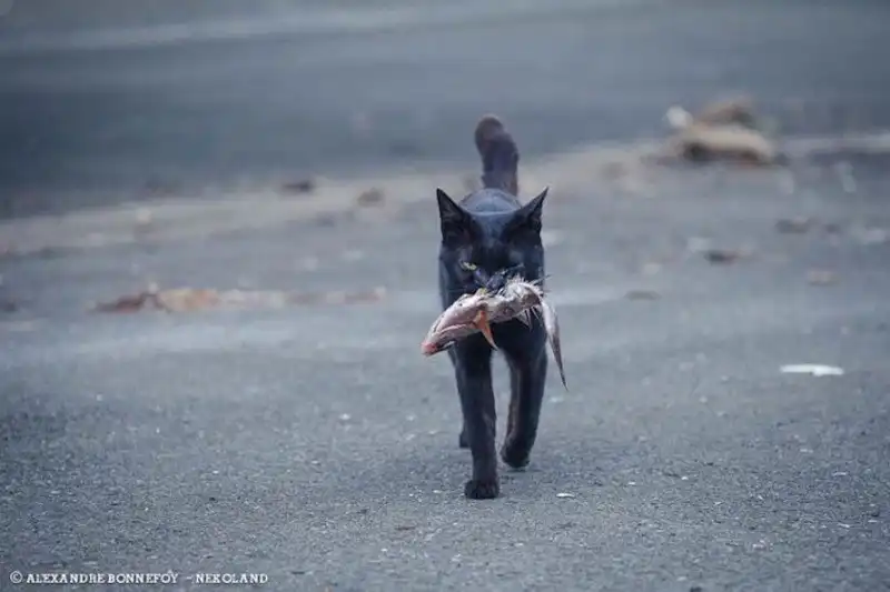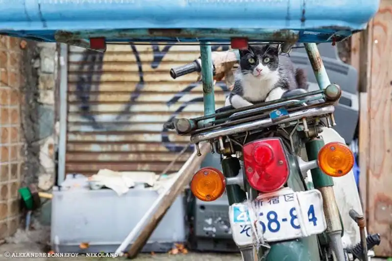 Alexandre Bonnefoy - французский фотограф, исследовавший мир японских бездомных кошек в серии - "Неко Лэнд". Герои этого репортажа где каждый - личность, украшены шрамами и отметинами, несмотря на довольно гуманное отношение к котам со стороны местных жителей. Впрочем, как и положено бродягам.
