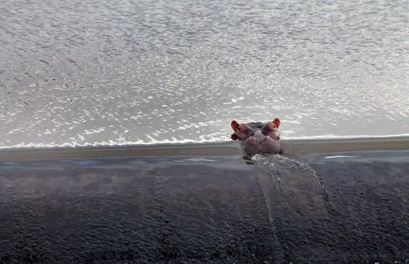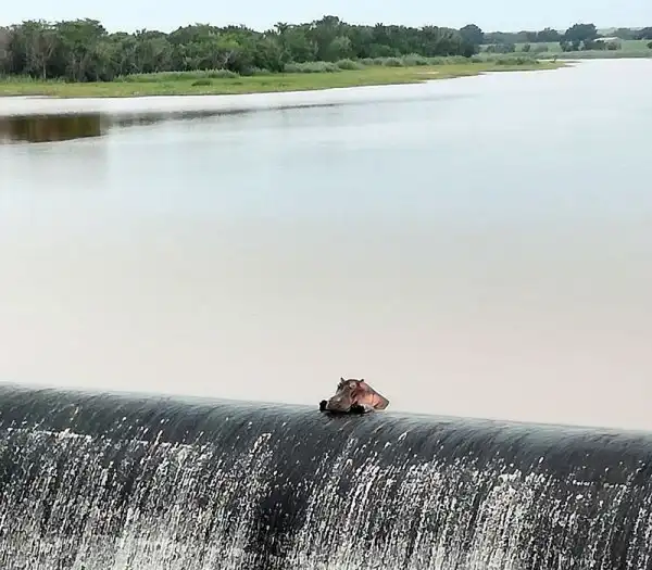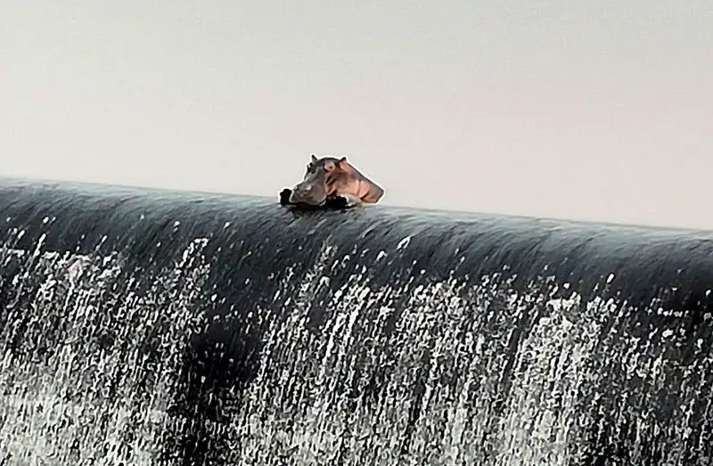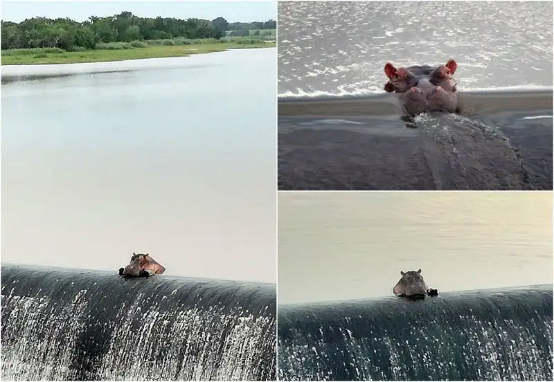 Этот бегемот был замечен во время половодья на реке Комати в Южной Африке. 47-летний Лоу Преториуса (Louw Pretorius) сфотографировал интересное животное, которое он видит не первый раз.