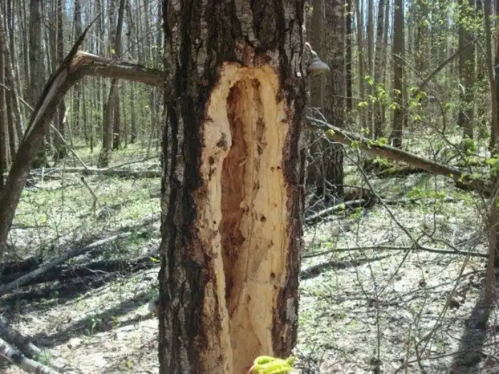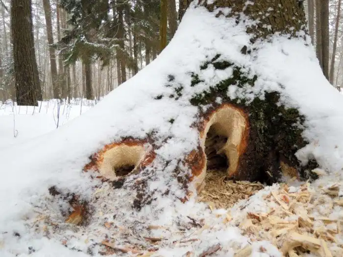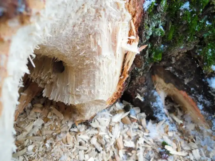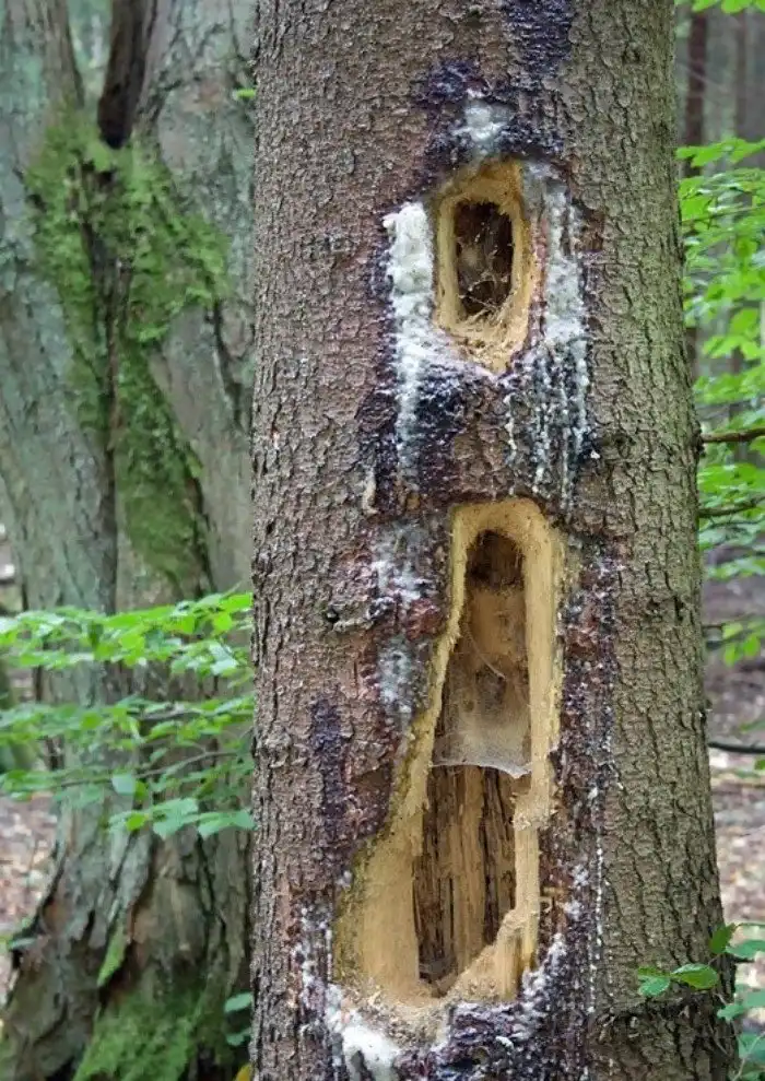 А произойти могло только одно... Дятел превратил дерево в то, что даже бобру стыдно будет показать. Для чего они это делают? Разве им не жалко деревья?