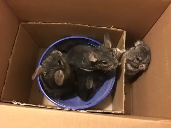 Стайка шиншилл принимает песчаную ванну (этим животным нельзя намокать)