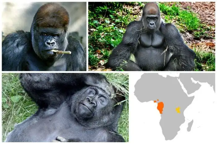 Гориллы. На сегодня в дикой природе осталось около 800 особей горилл.