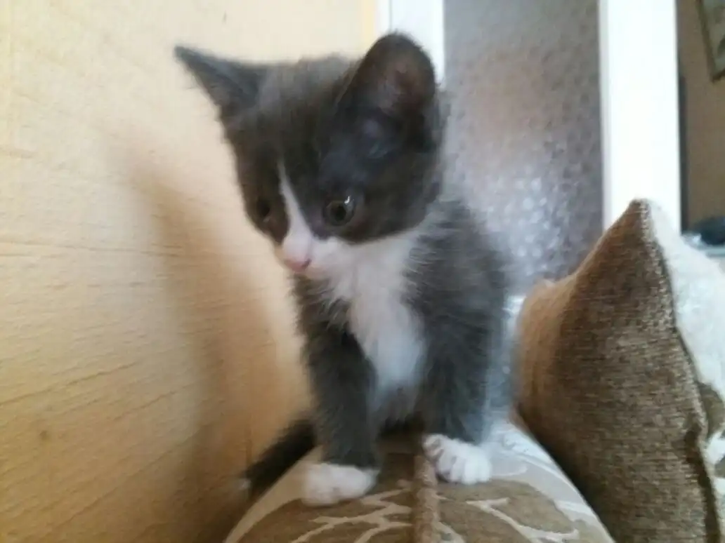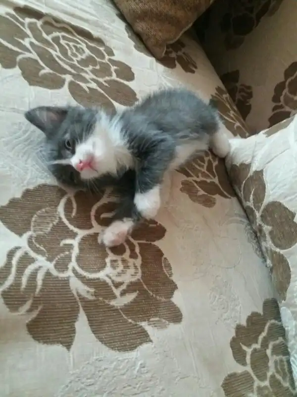Ему примерно месяц - полтора. Подкинули в подъезд.
