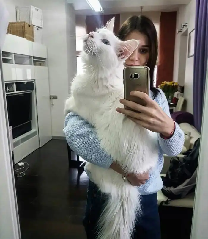 Познакомьтесь с Тихоном - огромным мэйкуном, уверенным, что его главная миссия в жизни - использовать любую представившуюся возможность пообниматься с хозяйкой.