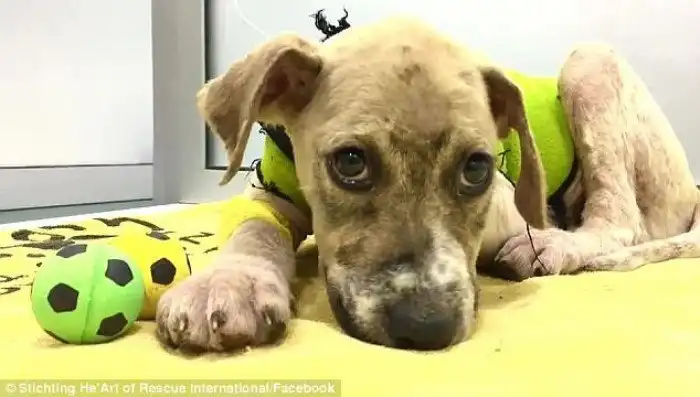 Дети измазали этого четырехмесячного щенка промышленным клеем. Засохший клей, словно цемент, прилип к коже животного и стеснял движения. Мы покажем удивительное преображение щенка по кличке Паскаль после того, как ему помогли зоозащитники, и длительного восстановления.