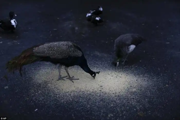 Территория павлинов выглядит вытоптанной и безрадостной. Хорошо, что питание животные пока получают без проблем.