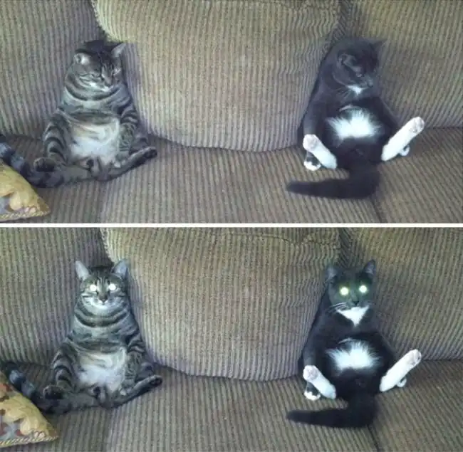 Если в большинстве случаев кошки предпочитают спокойно лежать в каком-нибудь уединенном месте или прямо на своих хозяевах, то порой их поведение кардинально меняется, и они начинают вести себя как-то странно. Подобные странности нельзя не заметить, а потому хозяева фотографируют своих питомцев в эти моменты и публикуют данные фото в сети, чтобы другие любители кошек не думали, что с подобной проблемой столкнулись только они.