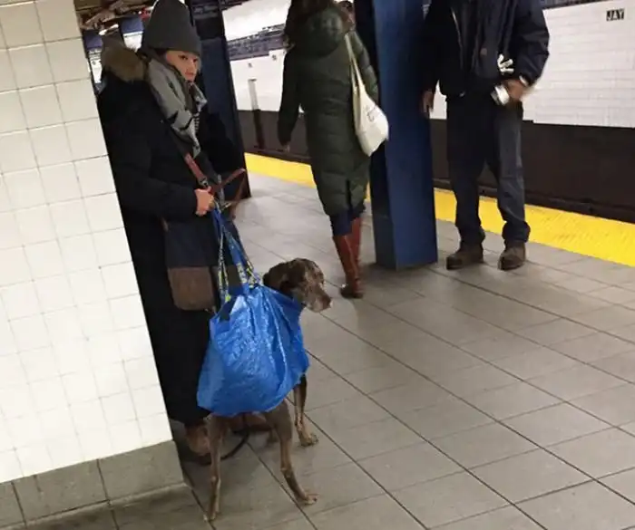 Руководство нью-йоркского метро запретило хозяевам собак перевозить своих питомцев в вагонах, если они не помещаются в различные сумки или рюкзаки. Но они не учли тот факт, что хозяева животных всегда найдут выход из сложившейся ситуации.