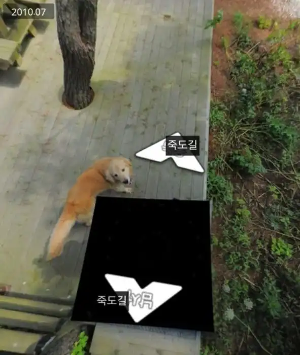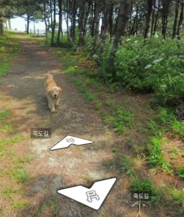 Пес из Южной Кореи заинтересовался камерой системы Google Street View и попал на несколько снимков. Животное шло за автоматической камерой, которая обычно устанавливается на какое-нибудь транспортное средство. Комментаторы попытались найти точные координаты, и, как стало известно, собака, ставшая героем фото, живет в уезде Уллын на южнокорейском острове Уллындо.
