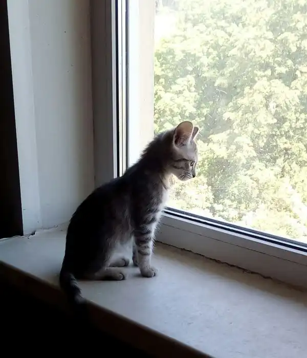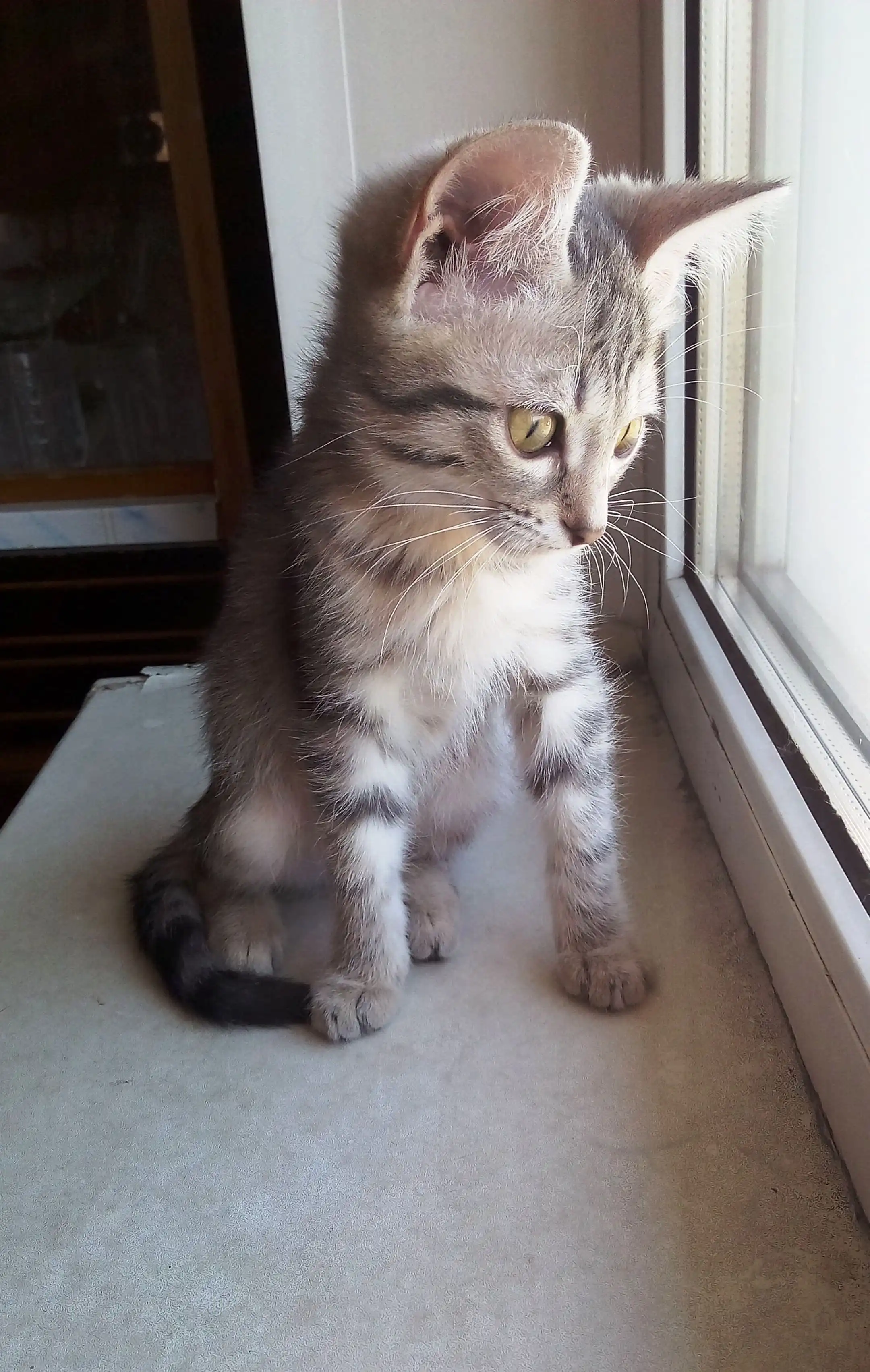 Луна - серо-голубая полосаточка, любопытная, самостоятельная и любвеобильная.