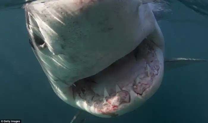 У большой белой акулы острые зубы растут в несколько рядов. Она не считает человека добычей, но, обороняясь, способна перекусить человеческое тело пополам.