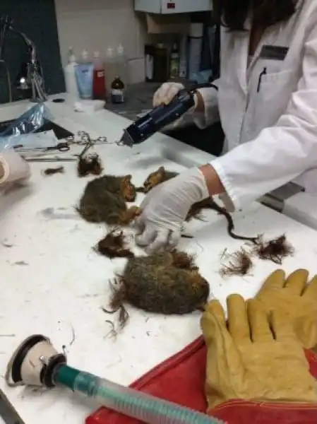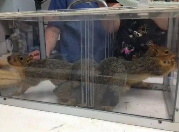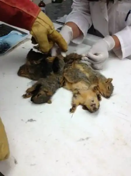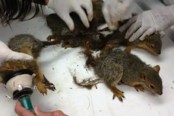 В клинику канадского города Реджайна принесли огромный клубок из шести белок, которые сплелись хвостами и пытались двигаться вместе, как одно животное. По словам ветеринара Стивена Крузениски, белкам повезло, что их смогли распутать, в противном случае пришлось бы ампутировать хвосты.