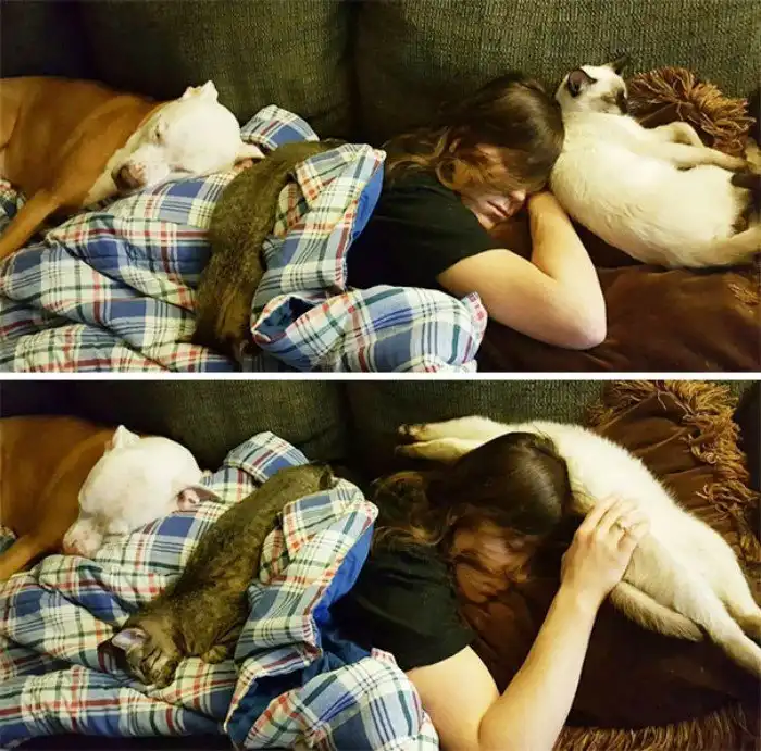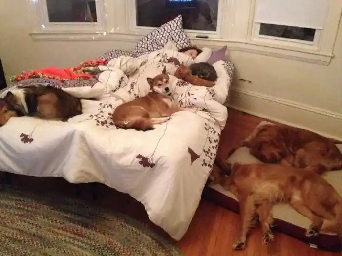 "Наши животные собрались вместе лишь тогда, когда я решила поспать, - и решили составить мне компанию"