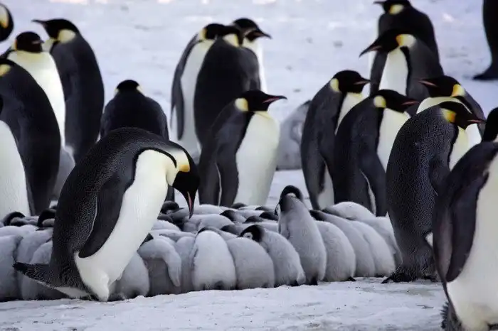 Так пингвины отогревают своих пингвинят, образовывая вокруг них кольцо.