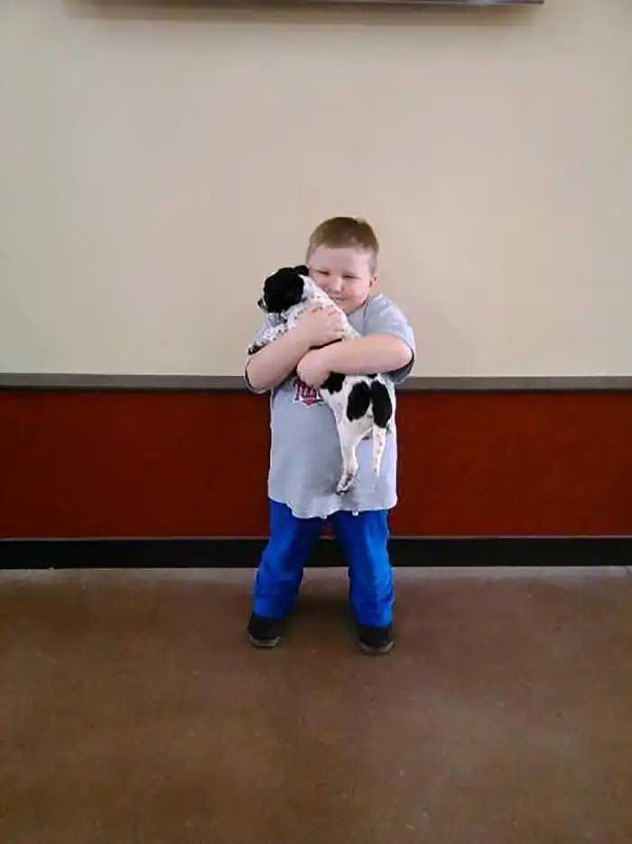 "Этот мальчик сегодня взял щенка в нашем местном приюте"