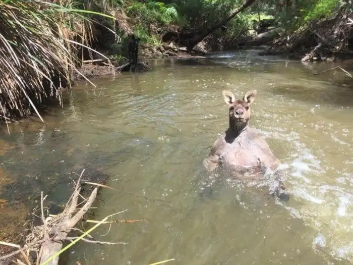Фотограф из Западной Австралии запечатлел на фото купающегося в реке кенгуру. Казалось бы, этими сумчатыми на континенте никого не удивить. Но этот парень оказался необычным. И его фото можно спокойно помещать на обложку журнала про бодибилдинг.