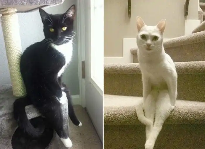 Кошки - хитрющие бестии! Они жалобно мяукают и заглядывают нам в глаза, делая вид, что без нас не проживут, и требуют ласки и вкусных кусочков. Но, стоит нам уйти из дома - и оказывается, что они умеют открывать холодильник, лазать по шкафам и наводить беспорядок в вещах не хуже людей! Скоро они совсем освоятся с ролью царей природы. Они даже сидеть научились по-человечески! Вот, посмотрите!