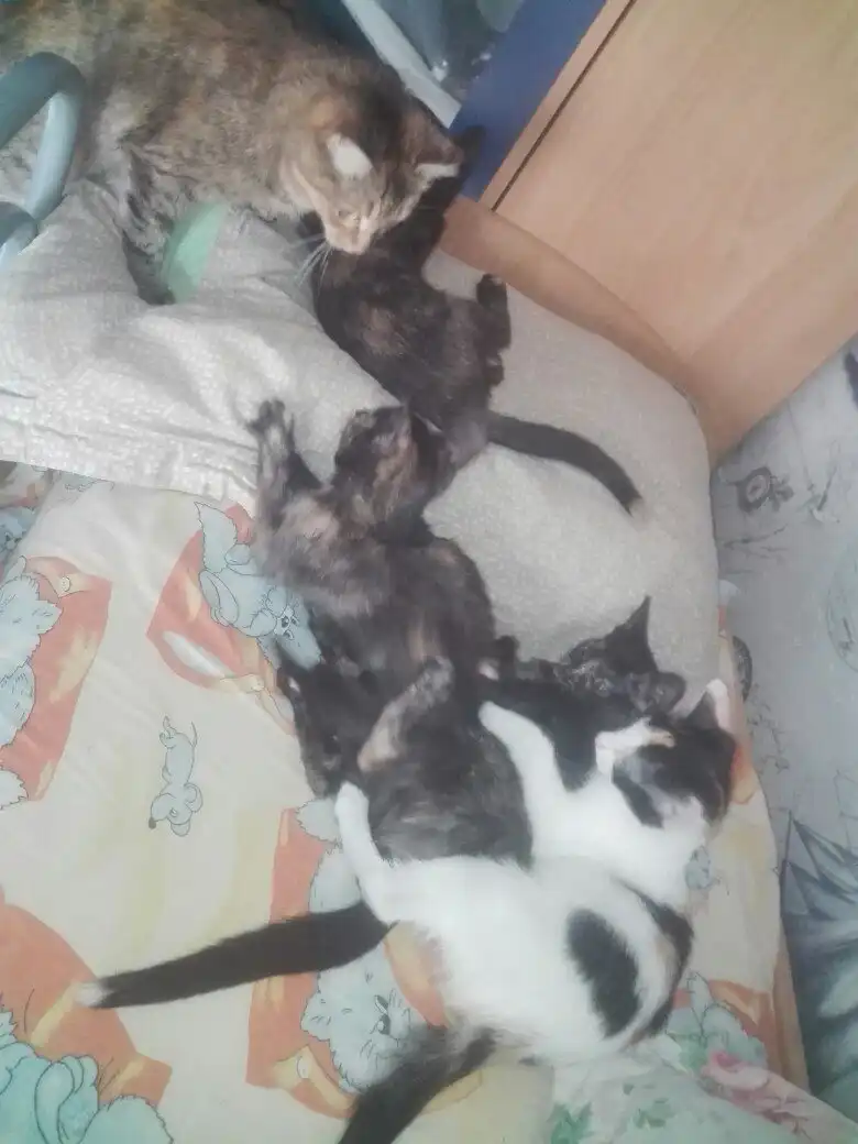 Ищут дом три чёрных-черепаховых и одна белая-трёхцветная морда. Знают лоток, здоровы, ладт с детьми и другими животными. Чёрные активные и любознательные, белая ручная и ласковая. Мария 89138766798