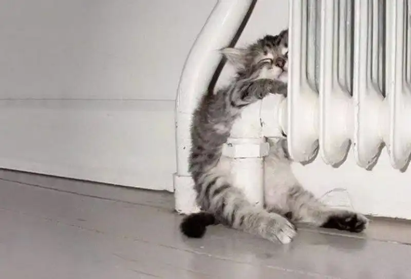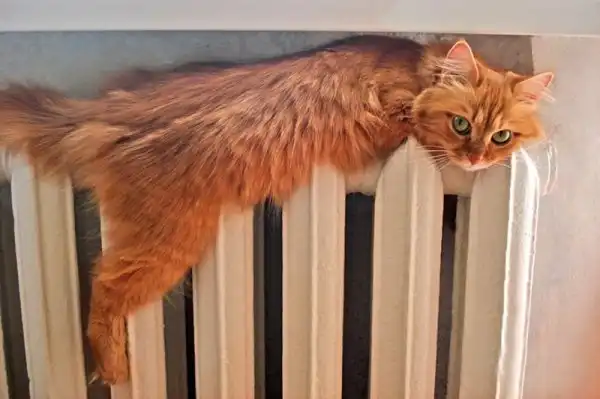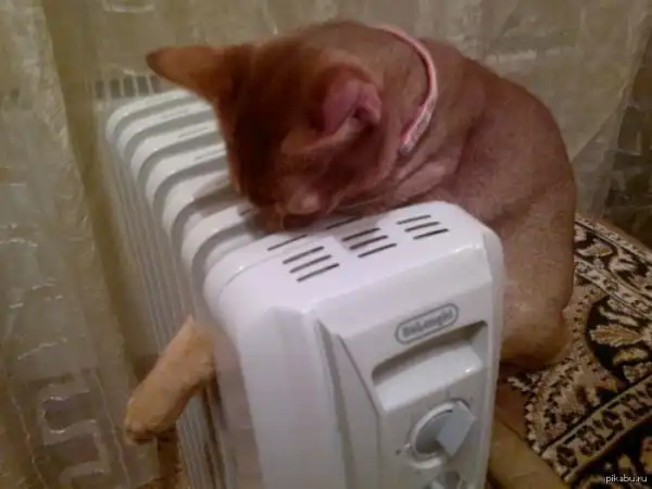 Несмотря на крутой обогрев в виде естественной шубы, коты любят где теплее.