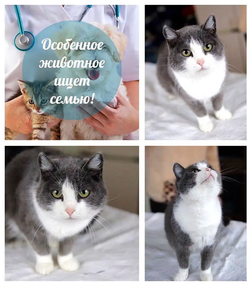 Кошка Нина - нежная девочка окраса голубой биколор. Возраст кошечки примерно 2 года. Найдена на улице, немного подморожено правое ушко. Приятная в общении, обожает человека, ласковая, послушная, очень мягкая и уютная. Отлично ладит с другими кошачьими. Питается готовыми кормами, пользуется лотком. Стерилизована.