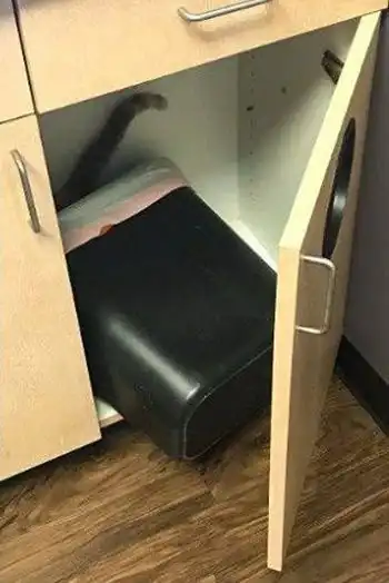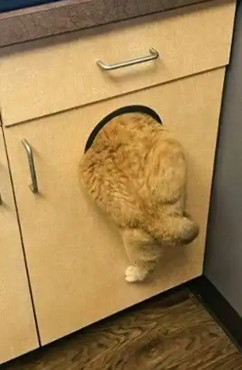О путешествиях домашних любимцев по дому можно слагать летописи. Кот на кухне – это вообще отдельная книга. Пока никто не видит, рыжее создание пытается пробраться к мусорному ведру. Цель достигнута.