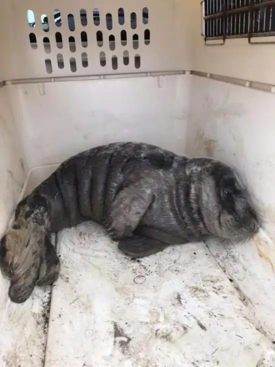 2-месячный тюлень не проявлял никаких признаков агрессии и спокойно дал поместить себя в переноску.