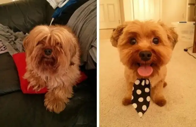 Собаку с длинной спутанной шерстью навряд ли захотят погладить прохожие, ведь в таком виде она выглядит неопрятно. Решил вам показать сравнительные снимки собак до и после стрижки, чтобы показать вам насколько отсутствие лишней шерсти меняет внешность животного.