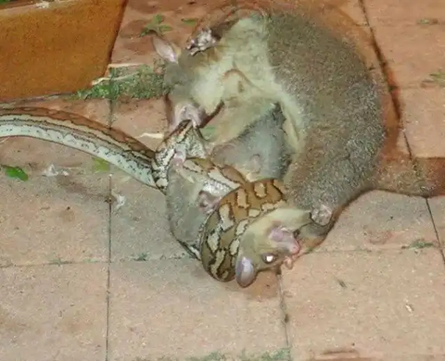 Поразительные фотографии борьбы поссума с питоном привлекли внимание людей в соцсетях. На этих кадрах самка поссума буквально вырывает своего детеныша из смертельных объятий голодной змеи.