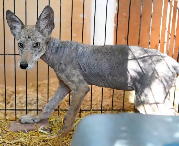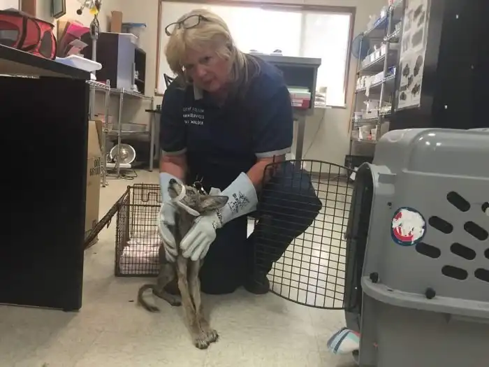 Это несчастное животное было обнаружено в городе Лумис, штат Калифорния, США. Оно было сильно истощено и обезвожено, и выглядело так плохо, что никто не мог сказать, что это вообще за животное. Как выяснилось позже это была молодая самка койота, которой дали кличку Принцесса. Далее предлагаем взглянуть на то, как несчастное животное превратилось в самую настоящую принцессу, после того как попало в руки зоозащитников.
