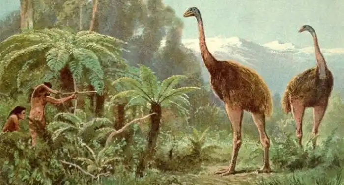 Травоядные птицы моа, обитавшие в Новой Зеландии, не имели крыльев, могли достигать в высоту 3,5 метров и весить до 250 килограмм. Моа вымерли в 1500-х годах: их истребили аборигены маори, которые до прибытия европейцев были основным населением Новой Зеландии.
