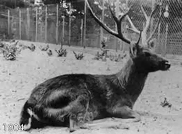Олень Шомбургка обитал в болотистых равнинах в центральной части Таиланда. Коммерческое производство риса на экспорт в Таиланде превратило почти все луговые и болотистые районы, где раньше обитал олень Шомбургка, в плантации риса. А интенсивная охота ради мяса и рогов, использовавшихся в традиционной китайской медицине, продолжила сокращение численности вида, пока он не вымер полностью. Последний живший в неволе олень этого вида был убит в 1938 году.