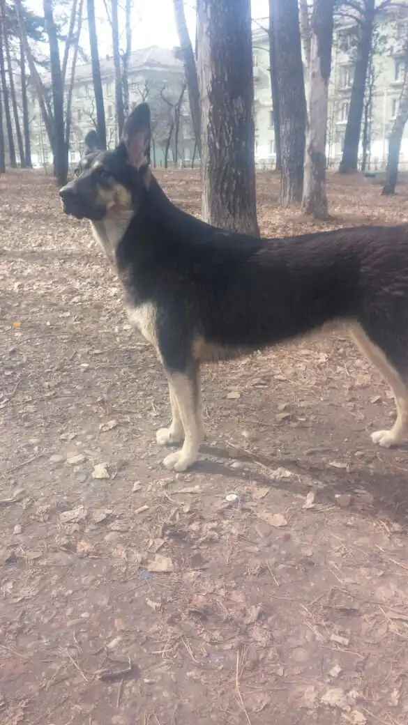 Крупная девочка в поисках дома. Похожа на овчарку, лает очень громко. Около года.