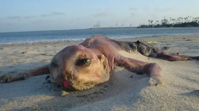 Первый скелет необычного создания вынесло на пляж Монте-Айленда в ноябре 1953 года. Тогда местных подняли на смех, ведь никто не догадался сделать снимков. Но осенью 2016 года на берег выбросило аналогичные останки странного существа, которое теперь исследуют морские биологи.